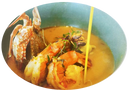 Thai spices, poached Blue Crab, Mussels, Calamari, Shrimp Oil